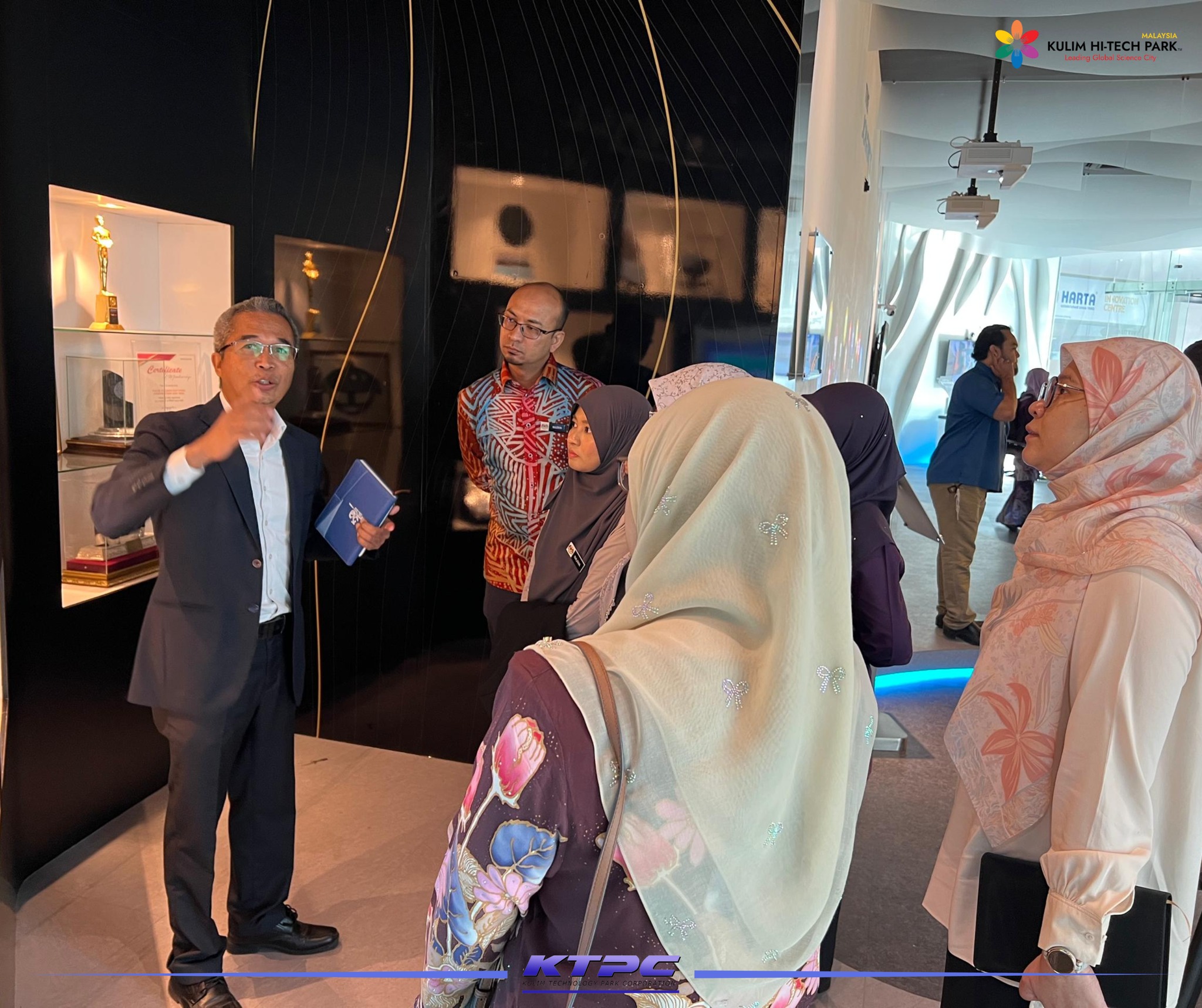 Sejurus ketibaan, delegasi dibawa melawat KHTP Xperience Centre (KXR) bagi melihat dengan lebih dekat landskap industri dan ekosistem dalam KHTP dengan menggunakan teknologi terkini secara maya. Seterusnya, taklimat khas telah disampaikan oleh En. Mohd Zaid Abdul Jalil, Timbalan Ketua Pegawai Eksekutif Kumpulan KTPC berkaitan inisiatif strategik dan pembangunan terkini di KHTP.