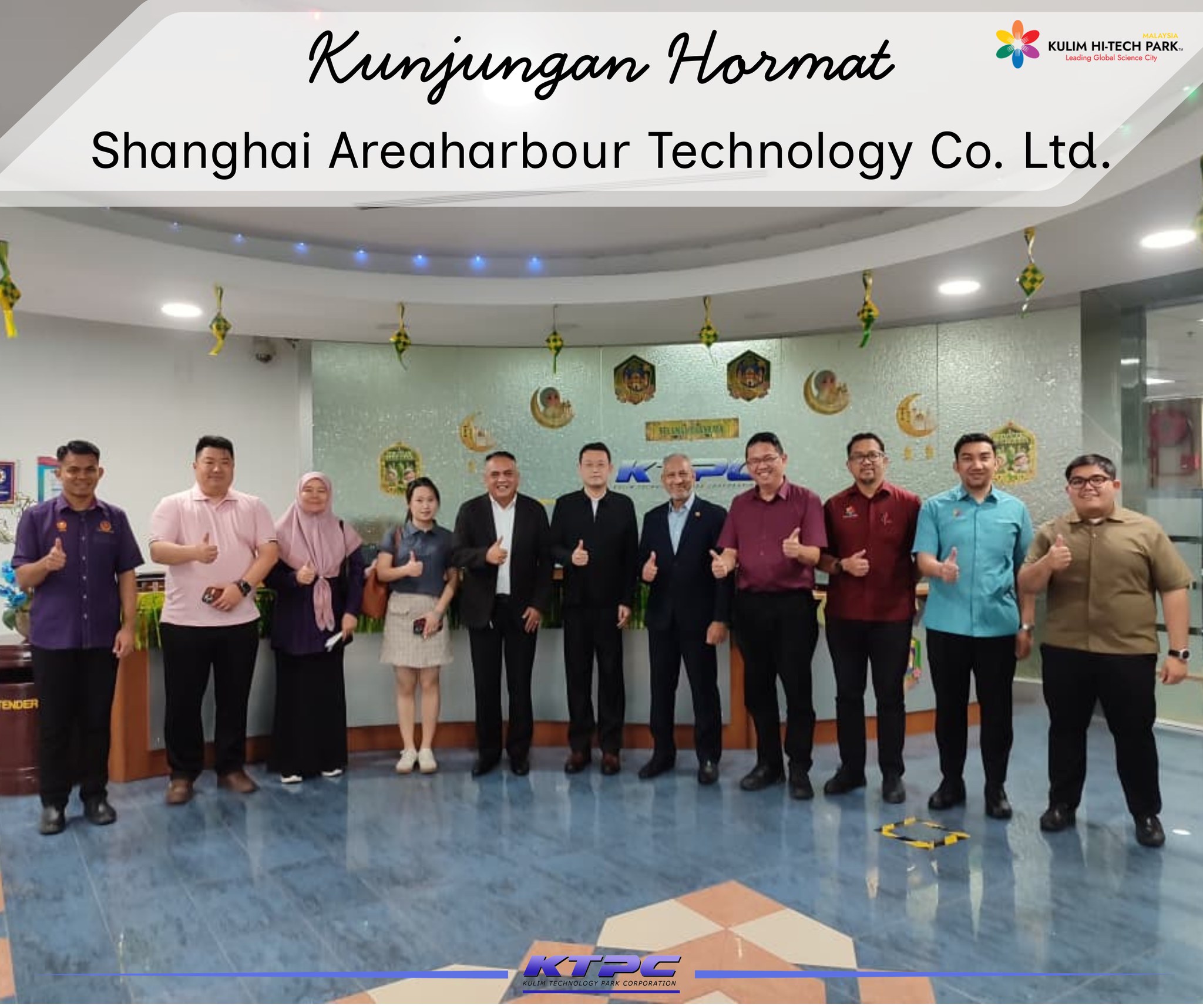 Kulim Technology Park Corporation Sdn. Bhd. (KTPC) hari ini menerima kunjungan hormat daripada delegasi Shanghai Areaharbour Technology Co. Ltd bersama wakil Permodalan Kedah Berhad (PKB) di Kulim Hi-Tech Park (KHTP).