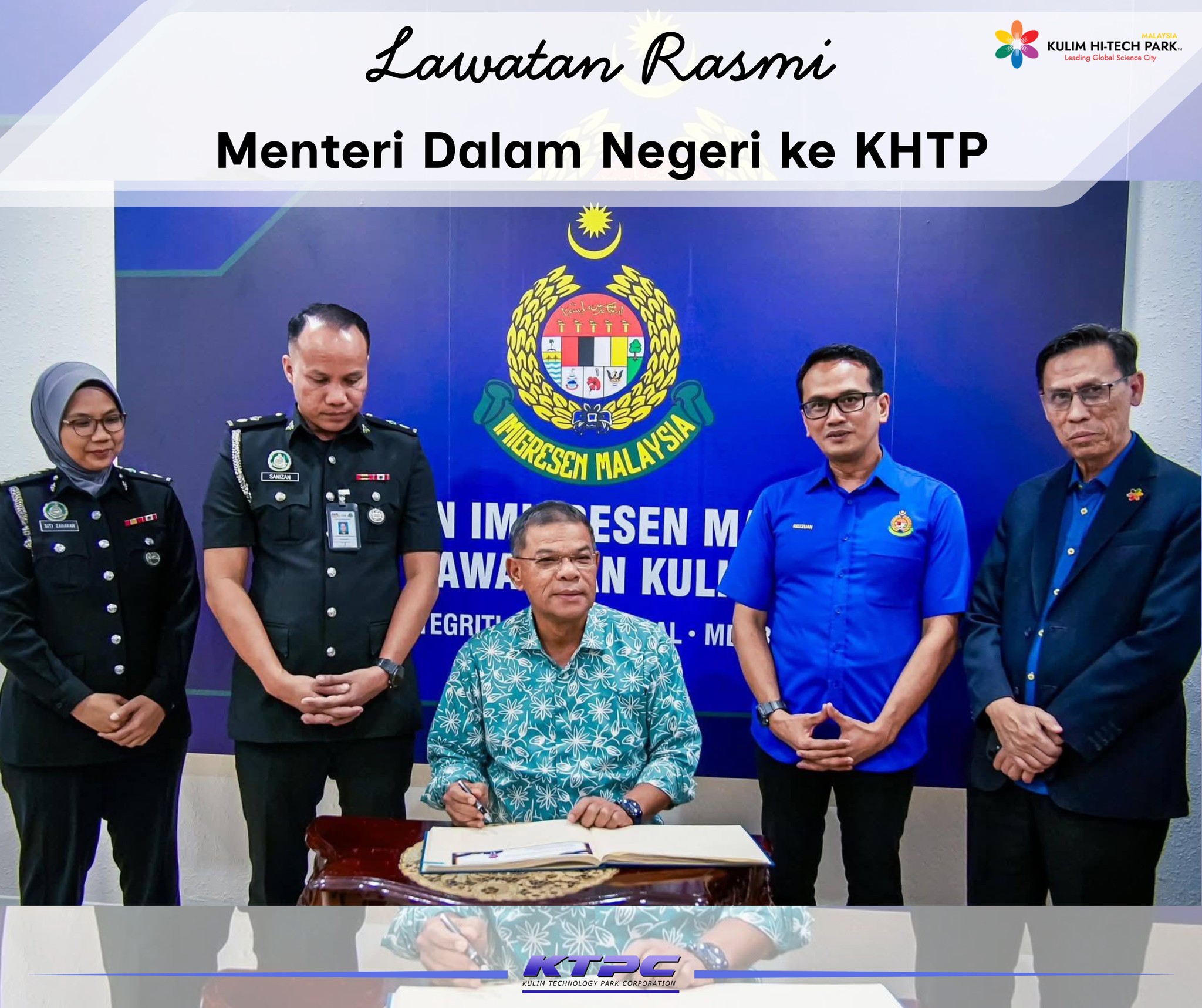 Kulim Technology Park Corporation (KTPC) berbesar hati menerima lawatan YB Datuk Seri Saifuddin Nasution Ismail, Menteri Dalam Negeri ke Pejabat Imigresen Cawangan Kulim yang kini beroperasi di lokasi baharu di KHTP Business Centre, Kulim Hi-Tech Park (KHTP).