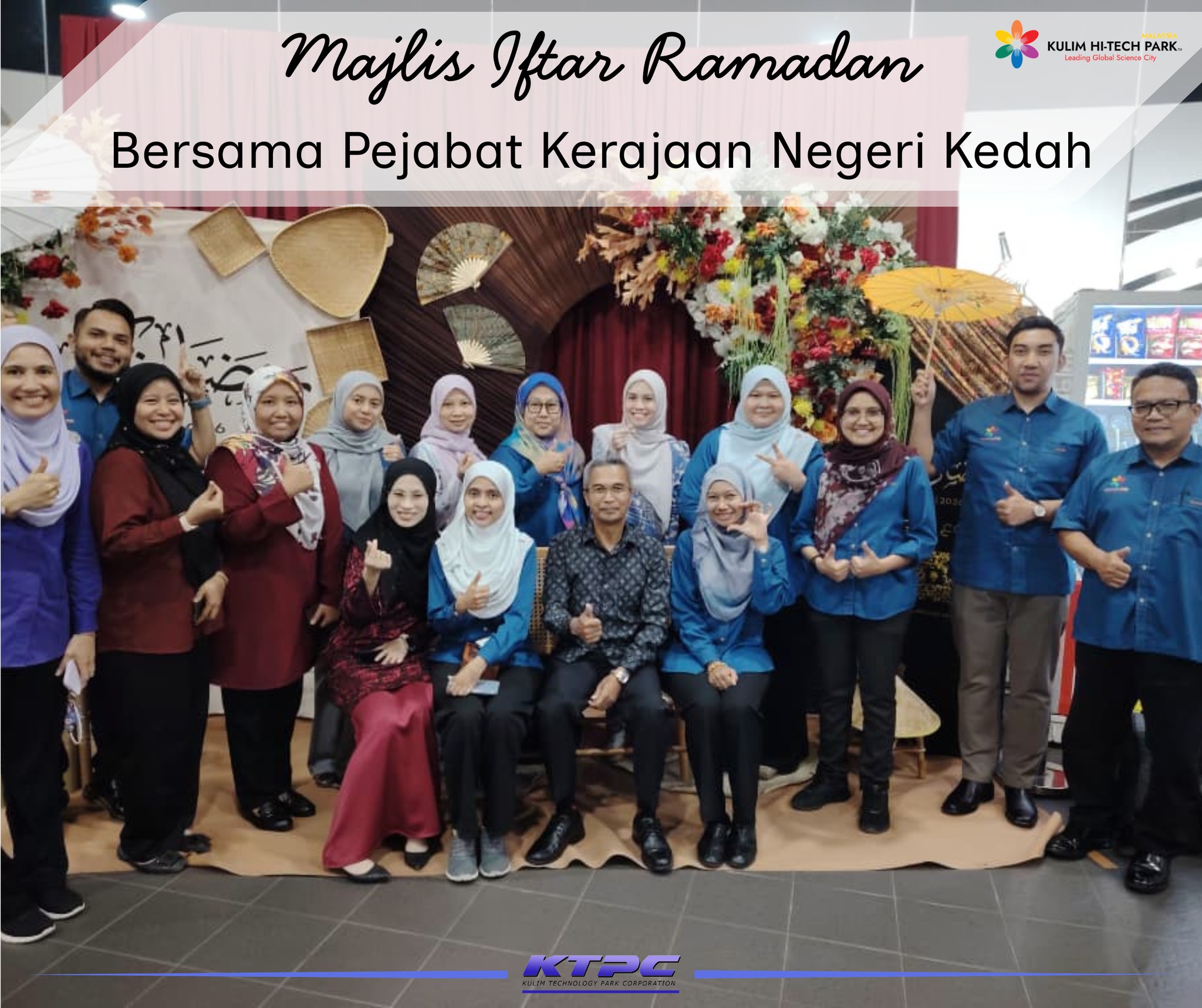 Kulim Technology Park Corporation (KTPC) berbesar hati menganjurkan Majlis Iftar Ramadan bersama pejabat-pejabat kerajaan Negeri Kedah sebagai tanda penghargaan atas sokongan dan kerjasama berterusan pihak Kerajaan Negeri dalam pembangunan kawasan Kulim Hi-Tech Park (KHTP).