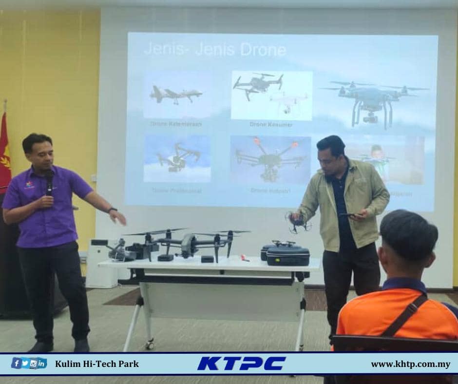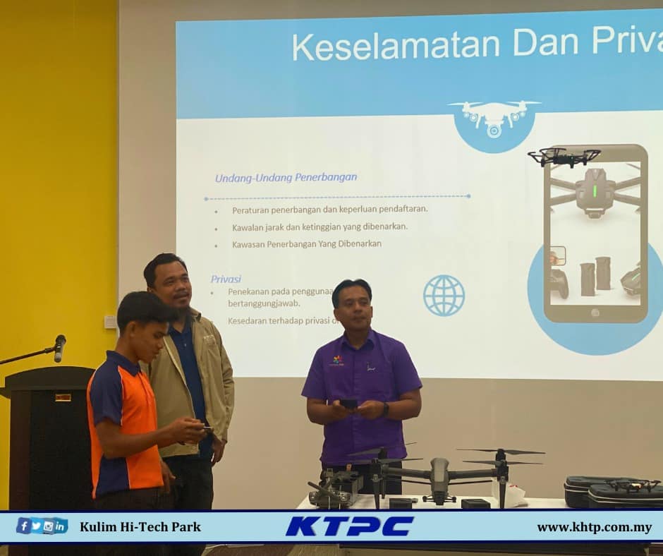 Seterusnya, para pelajar dan guru dibawa mengunjungi KHTP Xperience Centre bagi merasai pengalaman dunia digital dengan komponen seperti Virtual Reality dan Flytrough. Lawatan diteruskan lagi ke 𝑐ℎ𝑒𝑐𝑘𝑝𝑜𝑖𝑛𝑡 ketiga iaitu pengenalan ringkas kepada teknologi Drone yang disampaikan oleh KEDAH Digital Centre. Para pelajar diberi pendedahan dan pengalaman mengendalikan drone.